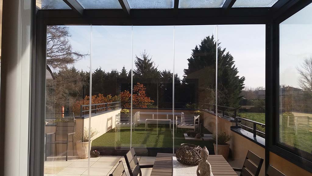 Elle peut également être fermée par des menuiseries traditionnelles ou par des parois vitrées en verre trempé sans châssis, effet garantie. Dans tous les cas, vos meubles d'extérieurs seront protégés toute l'année des intempéries